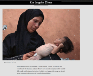 The paper’s anonymous “Voices” feature late last month, “Famine’s toll on the children of Gaza: The world shouldn’t look away,” is the natural product of that aspiration to spurn all that stands at the heart of ethical journalism, that is “striv[ing] to ensure the free exchange of information that is accurate, fair and thorough.”