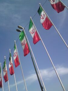 Islamic Republic of Iran flags in a row, June 11, 2011. (credit: Alborzagros, CC BY-SA 3.0, via Wikimedia Commons)