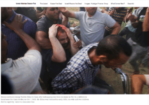 Similarly, a misleading caption appearing alongside an Oct. 11 New York Times article reads: “Hamas militants taking Yarden Bibas to Gaza after kidnapping him from his home in Nir Oz, a kibbutz in Israel near the Gaza border, on Oct. 7, 2023. Mr. Bibas was released in early 2025; his wife and two children died in captivity.” (Emphasis added.)