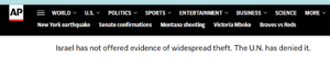 Perhaps a U.N. official at some point denied widespread theft either to an AP reporter or elsewhere. But on what basis did the AP completely disregard the U.N.’s own published data? Following CAMERA’s query to the news service on this point, editors removed the reference to the U.N.’s denial of widespread theft, along, unfortunately, with reporting about the accusations of theft.