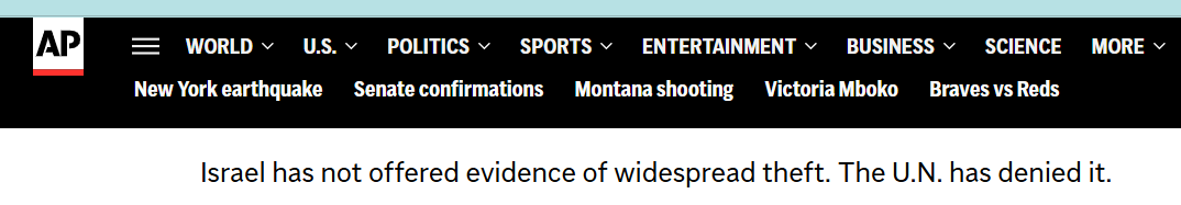 Israel has not offered evidence of widespread theft. The U.N. has denied it. [Emphasis added.]