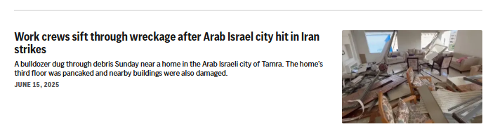 Notably, AP has rightfully been careful in the past to identify Arab towns in Israel and their residents as Israeli (ex, “the small Arab-Israeli city of Tamra, in northern Israel,” June 16, 2025; “an Israeli Arab man was killed” in Istanbul, Aug. 19, 2024; “Arab Israeli lawmaker” Ghaida Rinawie Zoabi, May 22, 2022).