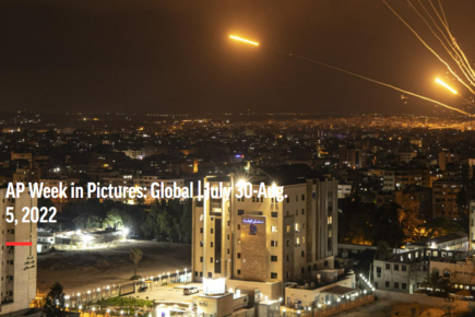UPDATE: CAMERA prompts correction of an AP Week in Pictures feature which misidentified outgoing Islamic Jihad rockets launched from Gaza towards Israel as "Israeli airstrikes."
