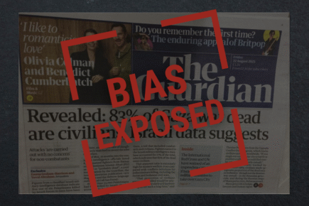 The Guardian’s “83% civilian” claim depends on the bizarre premise that if a Palestinian killed in Gaza is not marked as dead on a particular IDF list of named terrorists, they are necessarily a civilian. Ignoring thousands of unnamed fighters killed and omitting key context, the paper spun Hamas propaganda as fact.