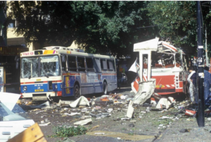 An attack on Bus 5 in Tel Aviv in October 1994. Yahya Ayyash supplied the explosives and strapped them on to the bomber (Photo by Barkai Wolfson/IDF Spokesperson’s Unit)